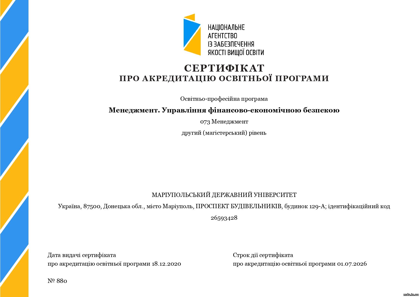 Освітня програма «Менеджмент. Управління фінансово-економічною безпекою»